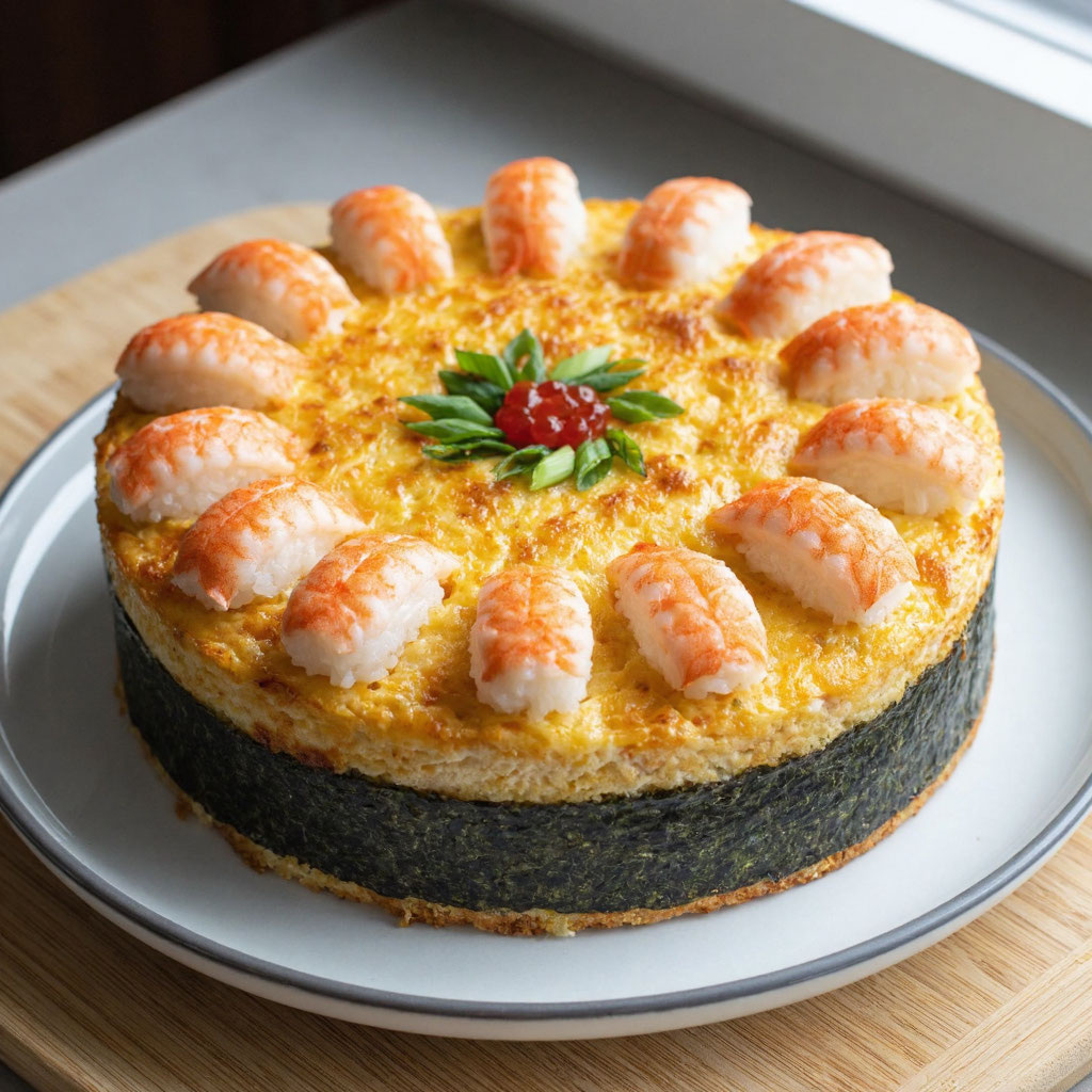 - Подача: Дайте торту немного остыть перед подачей. Разрежьте на порционные кусочки и подавайте с соевым соусом.