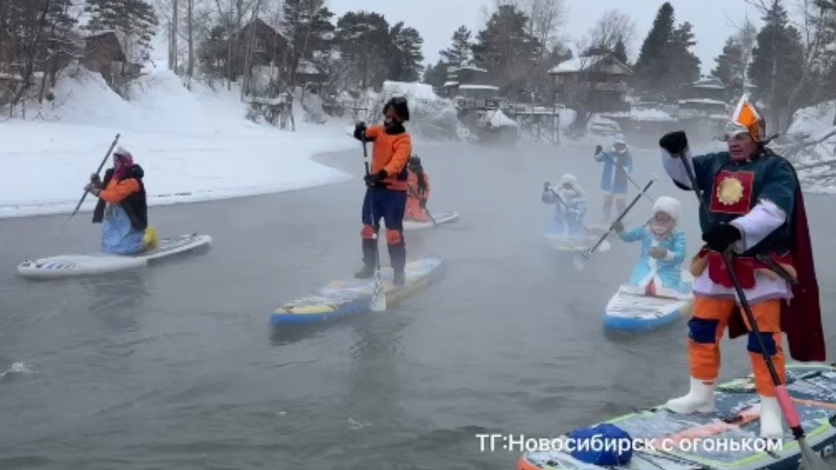 Новосибирцы в маскарадных костюмах устроили предновогодний заплыв на сапбордах