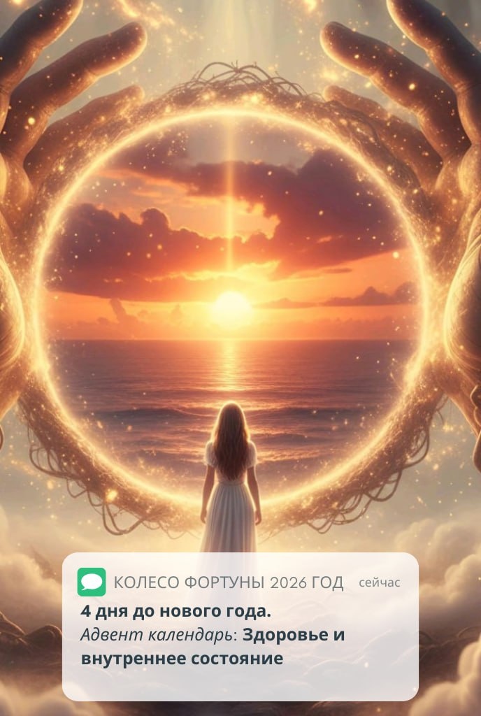 ! Продолжение "Адвент календаря" на 2026 год Здоровье и внутреннее состояние: Баланс в движении 🩷Колесо Фортуны может вызвать стресс, колебания энергии и эмоциональные перепады. Советы: 🩷Регулярно медитируйте 🩷Применяйте техники заземления 🩷Учитесь сохранять внутреннюю устойчивость даже в условиях хаоса. 🩷Помните о психосоматике: ваше тело может сигнализировать о сопротивлении изменениям. Возможны периоды спада и подъема энергии, а также колебания настроения. Большинство болезней в 2026 году - это в первую очередь психосоматика. ❤️❤️❤️❤️❤️❤️❤️❤️❤️❤️ В такие периоды торбулентности когда не знаешь с какой стороны "прилетит" очень сильно помогает знание своего личного прогноза на год. Ваш личный прогноз это не гадание, это расчет исходя из вашей даты рождения на 2026 год. Искренне рекомендую заказать и знать спокойно свой личный прогноз 🎁 ПОДАРИТЬ ПРОГНОСТИКУ своим близким и друзьям, на Новый год в виде ➡️➡️➡️сертификата Формат прогностики: pdf файл Срок подготовки: 1 с