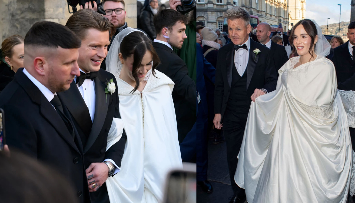 Гордон Рамзи выдал дочь замуж, и это тот редкий случай, когда светская хроника выглядит по-настоящему личной. Холли Рамзи вышла замуж за британского олимпийского чемпиона по плаванию Адама Пити. Церемония состоялась 27 декабря в Батском аббатстве. У входа собралась толпа, желающая увидеть пару хотя бы на мгновение, и именно этот выход моментально разошёлся по СМИ. Самый обсуждаемый кадр дня — Гордон Рамзи, ведущий дочь к церкви. Он придерживает ткань платья, в другой руке зонт, на лице полная сосредоточенность. В этом жесте нет постановочного кадра. Просто отец, который в нужный момент оказался рядом. Образ Холли получился сдержанным и очень английским по настроению. Белое кружевное платье в пол и плащ с капюшоном из атласа. Адам Пити выбрал классический смокинг и держался спокойно, без демонстративности. Вместе пара выглядела удивительно цельно и просто, будто этот день существовал вне светской гонки. После церемонии молодожёны направились на закрытое празднование за городом. Отдельн