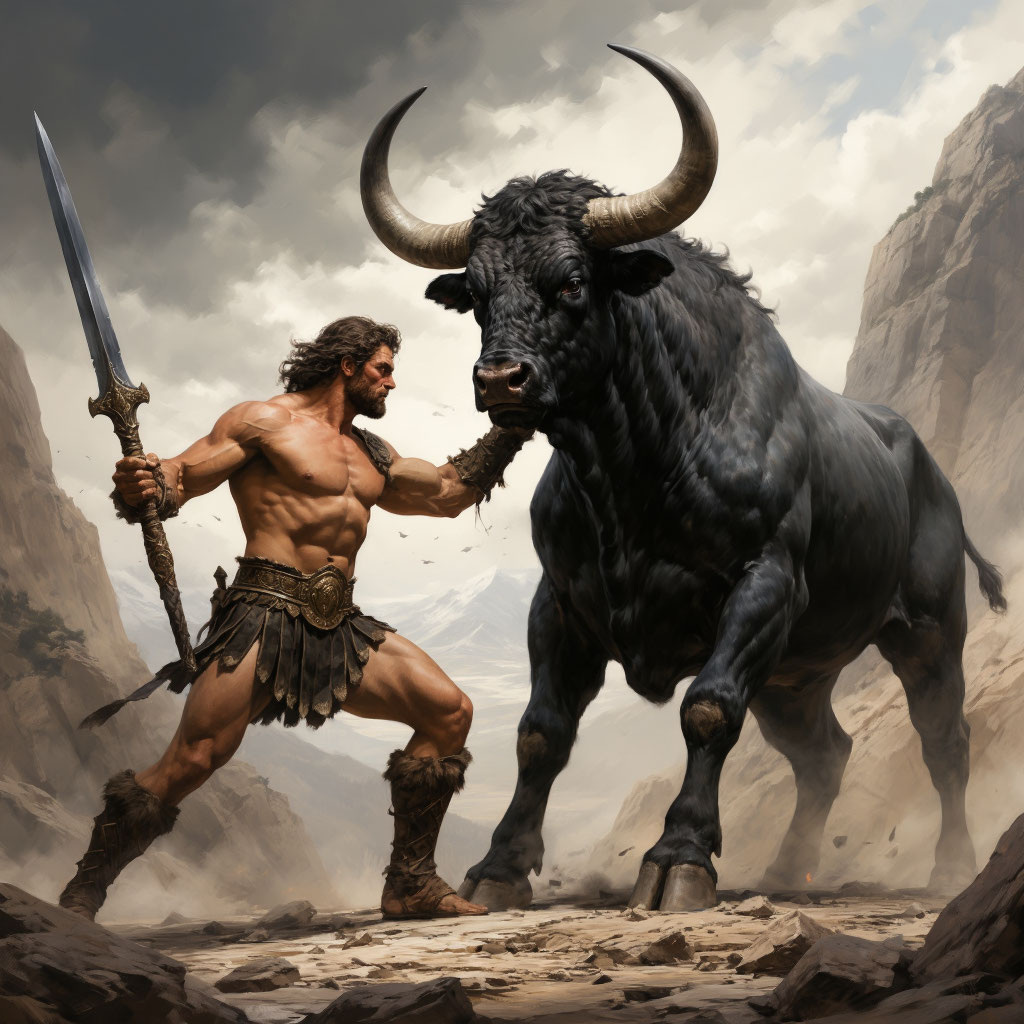 Микенский царь Эврисфей приказал Гераклу доставить в Микены Критского быка — чудовищное животное, посланное богом Посейдоном царю Миносу. Геракл прибыл на Крит и приступил к выполнению задания: Выследил быка в окрестностях Кносса. Вспрыгнул на спину разъярённого зверя. Обвил рога прочной цепью и туго затянул её, лишив быка возможности бодаться. Укротил сопротивляющееся животное, проявив недюжинную силу и хладнокровие. Чтобы доставить быка в Микены, Геракл решился на дерзкий шаг: Морская вода остудила ярость быка — он стал послушным и позволил Гераклу провести его через пролив от Крита до Пелопоннеса. Геракл привёл быка в Микены и представил Эврисфею. Однако царь: Освобождённый бык: Этот подвиг продемонстрировал, что Геракл способен не только сокрушать врагов силой, но и управлять самой природой, превращая угрозу в инструмент выполнения воли богов.