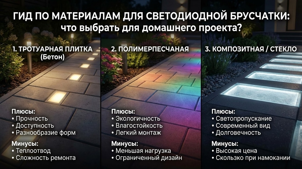 Гид по материалам для светодиодной брусчатки: что выбрать для домашнего проекта