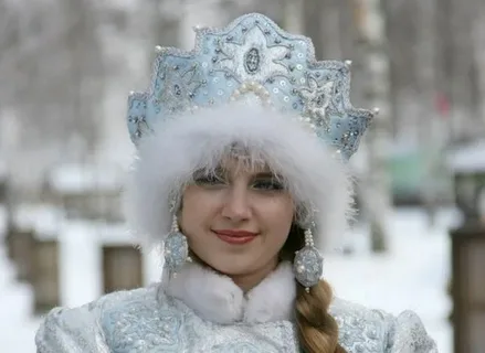 Меховая шапка или корона-кокошник – предпочитаемые головные уборы русской Снегурочки.
