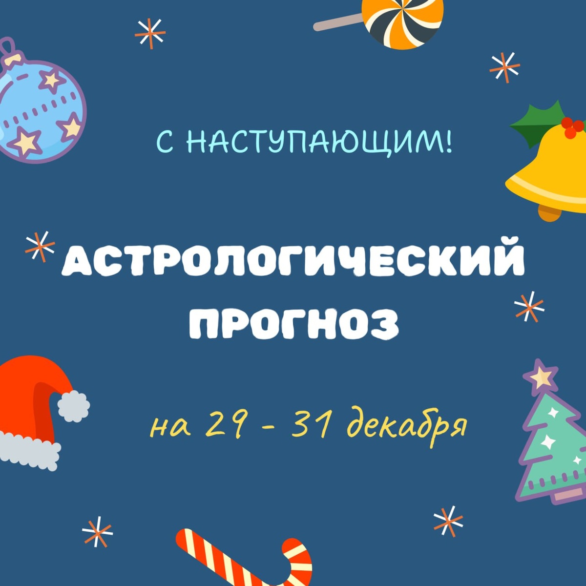 🎁 Последний аспект уходящего года - квадрат Меркурия в Стрельце к Сатурну в Рыбах во вторник, 30 декабря. Аспект неблагоприятен для поездок, отправки посылок, оформления документов, переговоров, поэтому постарайтесь по возможности не планировать таких задач на последние дни декабря, поберегите свою нервную систему от ударов Сатурна. Что касается непосредственно самого праздничного дня 31 декабря, то тут все складывается более гармонично. До 16:13 МСК Луна будет находиться в Тельце и помогать нам в решении хозяйственных вопросов, таких как подготовка праздничного стола и создание уютной и комфортной атмосферы дома. Потом Луна перейдет Близнецы. Такое ее положение идеально подходит для общения с друзьями и родственниками, братьями, сестрами. Однако хочу вас немного предостеречь. Первый день Нового года будет окрашен квадратом Меркурия в Стрельце к Нептуну в Рыбах. Следует быть осторожным в вопросах питания, особенно с горячительными напитками, так как есть риск отравлений. Про то, чт