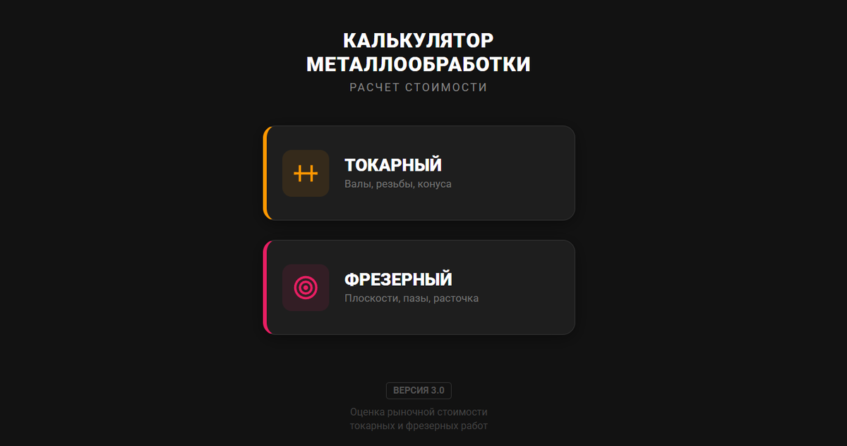 Меня не устраивала цена "от балды". Я разработчик и я мастер. Поэтому старый калькулятор уходит в историю. Встречайте Калькулятор Металлообработки 3.0.