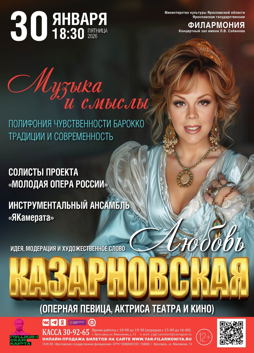 воздействия на душу. Композиторы того времени стремились не просто выразить свои эмоции, но и вызвать сильный отклик у слушателей, заставить чувствовать и сопереживать. Музыка и поэзия барокко – это диалог с вечностью, наполненный драматизмом, величием и неподдельной искренностью. 🗓 30 января 2026 года Вас ждут шедевры, которые покорили мир! На сцене Ярославской филармонии прозвучат произведения величайших мастеров эпохи барокко: Иоганна Себастьяна Баха, Георг Фридриха Генделя, Антонио Вивальди, Алессандро Скарлатти, Арканджело Корелли, Генри Перселла, Клаудио Монтеверди . Виртуозные произведения исполнят талантливые солисты проекта «Молодая опера России», под руководством арт-директора проекта, оперной певицы Любови Казарновской. https://quicktickets.ru/yaroslavl-filarmoniya/s303