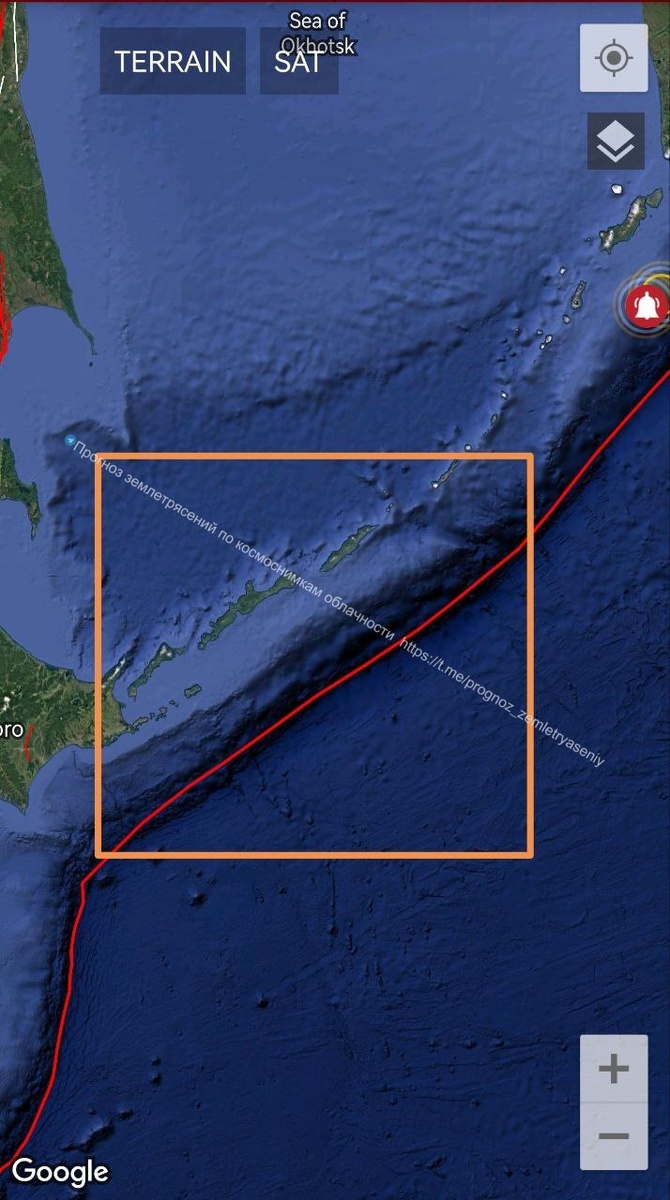 По Южным Курилам сегодня наблюдался ОСТИ по типу провала в облачности с заявкой на событие до М6.5+/-0.2