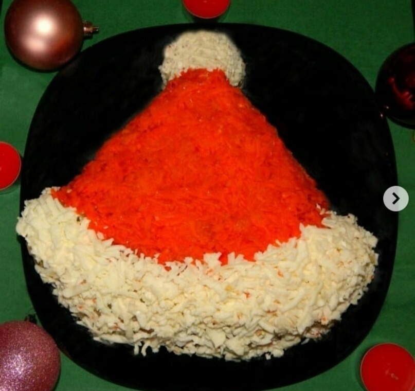 Вкусный салат с тунцом на новогодний стол! Салат Шапка Деда Мороза кажется намного вкуснее, когда оформлен интересно и красиво.