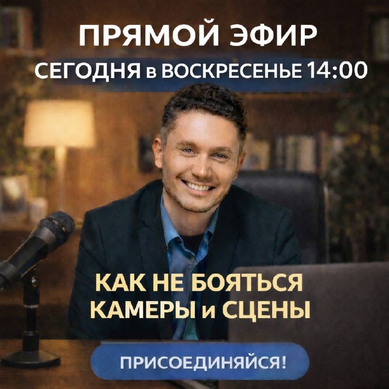 Ты знаешь материал. Ты понимаешь, о чём говорить. Но как только включается камера — всё будто «съезжает». Это не слабость. И не отсутствие уверенности. Это реакция нервной системы на внимание и оценку. И с этим можно работать. Сегодня в 14:00 я проведу прямой эфир «Как не бояться камеры и сцены» — разберём, что именно происходит в этот момент и что помогает говорить спокойно и уверенно. Без мотивационных лозунгов. Без «просто расслабься». Только реальные инструменты. 👉 Присоединяйтесь по ссылке в профиле. Буду рад видеть вас в эфире.