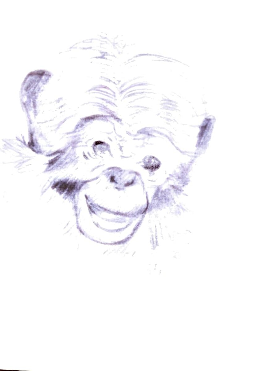 Мишенью был резвый малыш-павиан Буба, сидящий на лужайке метрах в 20- от ствола, в раздумьях, чем бы заняться. Вот он подошёл поближе, увидев порхающую возле дерева бабочку.