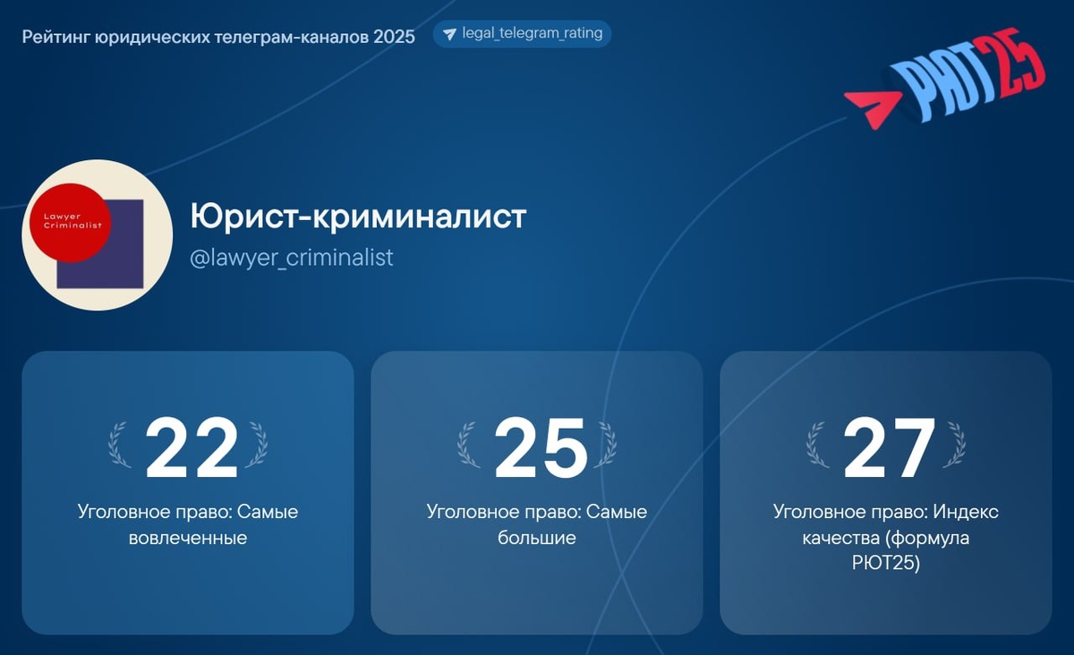 А мы то думали, откуда прирост подписчиков в конце года? Оказывается, это ежегодный рейтинг юридических тг-каналов помог) Спасибо нашим