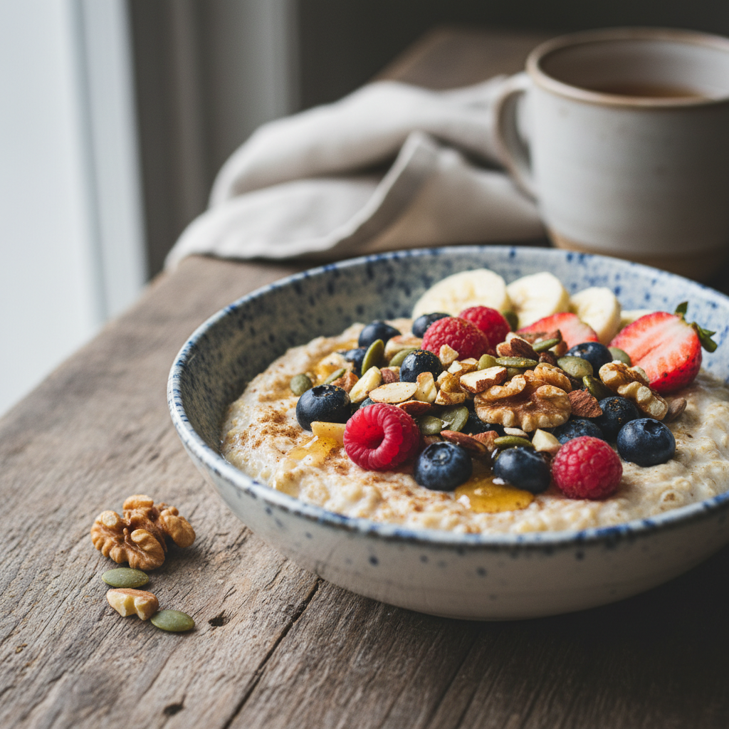 Совет: Классическую овсянку можно дополнить свежей зеленью или тёртым яблоком для свежести.