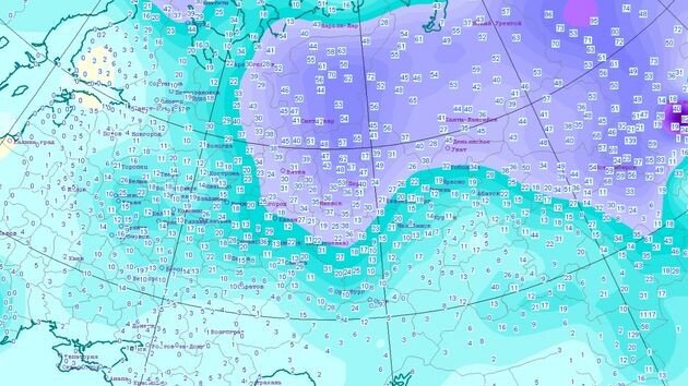 На опорной столичной метеостанции ВДНХ снежный покров подрос на 1 см и составляет 13 см, на Балчуге – 7 см, Тушино – 14 см. Климатическая норма для 28 декабря составляет 17 см.В Подмосковье высота снежногопокрова составляет от 10 см в Коломне, Серпухове, Павловском Посаде до 16 см – в Наро-Фоминске, 17 см – Можайске, 18 см – в Волоколамске, Клину и Дмитрове, и больше всего снега сейчас на полюсе холода – в Черустях, где высота снега под 19 см. В Центральной России местами высота снежного покрова достигает 22–27 см, в Поволжье до 30–35 см, в Предуралье и Коми выше полуметра (до 63–68 см.) Снег будет идти ежедневно, и к Новому году сугробы в Москве подрастут еще на 6–7 см и станут точь-в-точь соответствовать климатической норме (норма для 31 декабря – 19 см). На карте – фактическая высота снежного покрова на 28.12.2025 г. (см) Фото: © Центр ФОБОС