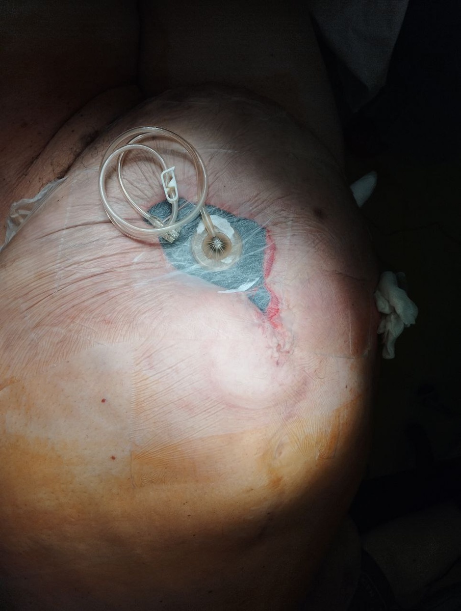 !!! 18+! Спасибо всем за ответы в комментариях! По итогу. Мы сделали вскрытие флегмоны, захода в живота и перитонита не выявлено. Кишку несущую абсцесс обструктивно резецировали (1 видео). Учитывая отсутствие непроходимости и перионита "разносить" инфекцию по пжк и брюшной полости не стали. Рана была тампонирована. При второй санации, был наложен аппаратный анастомоз (хотя конечно же сомнения были) и поставили ВАК-систему. Далее была серия санаций и открытого ведения раны (2 видео и фото) с последующим наложением вторичных швов на рану в отделении гнойной хирургии. Лапароскопию я люблю, но пациентка была с послеоперационной грыжей и не факт что было бы легко, и скорее всего затянуто. А тотальная лапаротомия и интубация на мой взгляд могла бы утяжелить и без того тяжёлую больную. Выбрали методику по типу "damage control". Что касается стомы, то мне кажется значительно сложнее было бы это сделать у такой объемной пациентки. Конечно же наше спасение ВАК-система и хорошее реанимационное