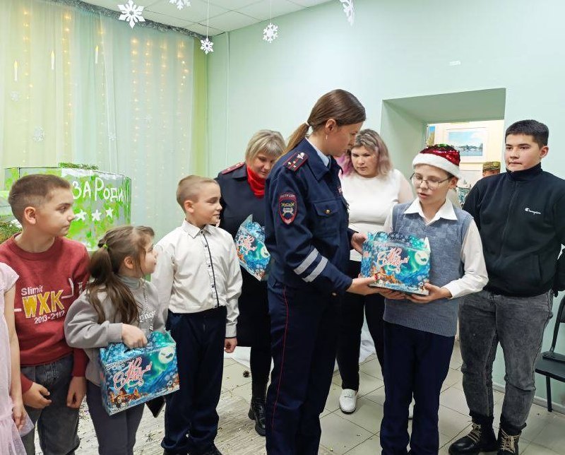 В преддверии Нового 2026 года Полицейский Дед Мороз поздравил детей из семей, состоящих на профилактическом учете в органах системы профилактики. Такому визиту мальчишки и девчонки были рады. Не скрывая радостных эмоций, они читали новогодние стихи и пели песни. Ребята поделились с Полицейским дедушкой своими успехами, а он, в свою очередь, похвалил всех за талантливые выступления, напомнил о необходимости соблюдения правил безопасности и, конечно, вручил детям долгожданные сладкие подарки.