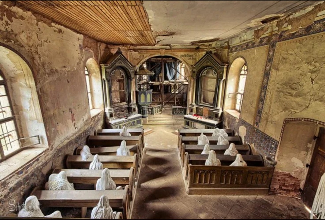 Последний настоятель, увлекавшийся магией, после изгнания наложил проклятие: «Здесь не будет ни служб, ни крыши». С тех пор каждый, кто пытался восстановить костёл, терпел неудачи, болезни или разорение.