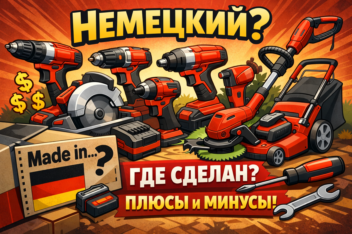 Einhell — немецкий бренд с сильной ставкой на аккумуляторную экосистему и широкую линейку для дома и сада. Производство у бренда глобальное, поэтому страну изготовления конкретного инструмента нужно смотреть по маркировке. Сильные стороны — системность, удобство, адекватная функциональность и нормальное качество в среднем сегменте. Ограничения — разброс по моделям и то, что тяжёлые профессиональные режимы требуют более высокого класса или очень осознанного выбора.