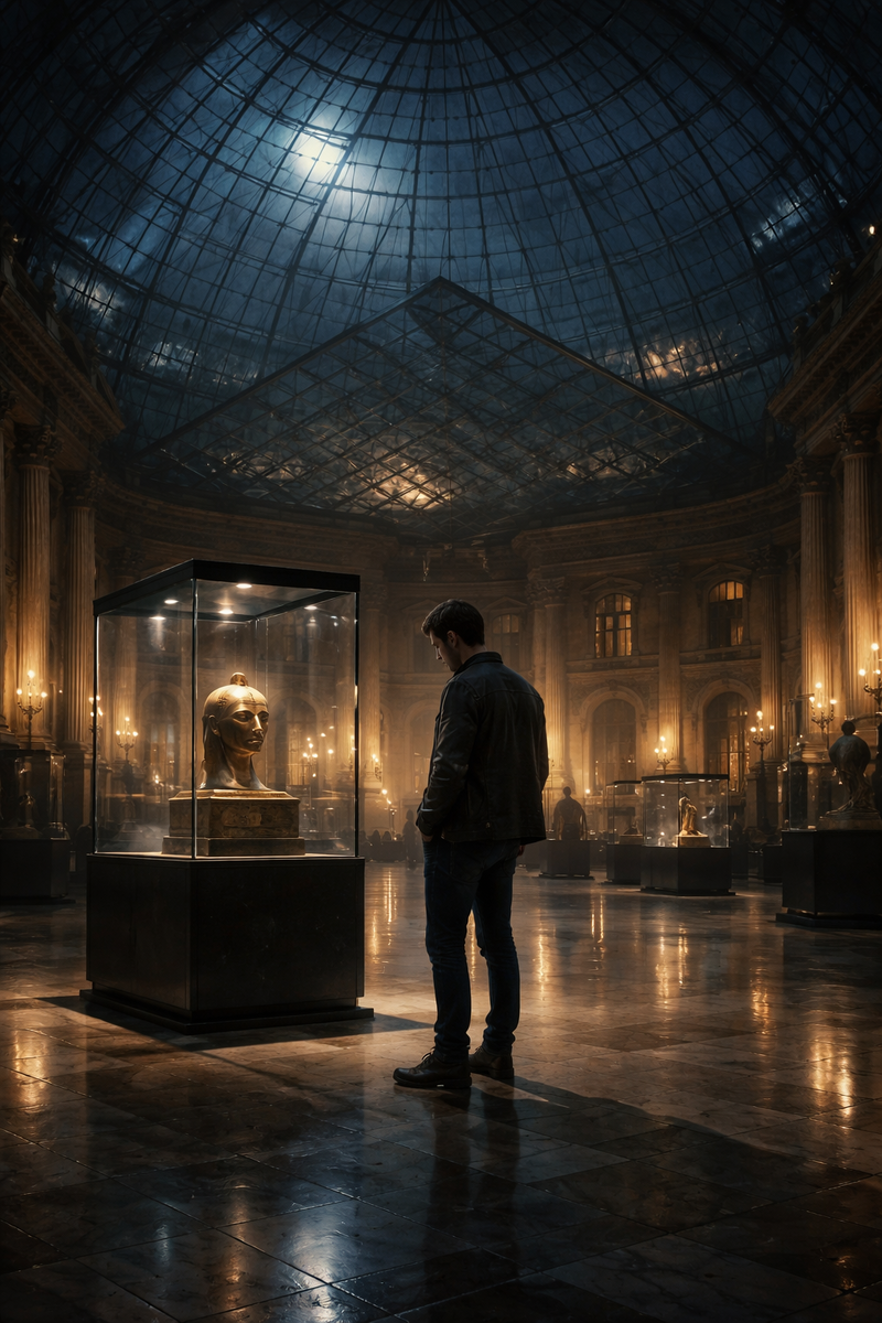 Он понял: следующий шаг уже сделан — даже если ноги ещё стоят на земле. Мысль только сформировалась — и мир сдался. Воздух свернулся, словно ткань, и рассыпался стеклянным звоном. Пыль, шум, крики улицы исчезли. Павел моргнул — и оказался под высоким куполом, где свет был мягким, почти водянистым. Лувр. Здесь время не шло — оно наблюдало.
