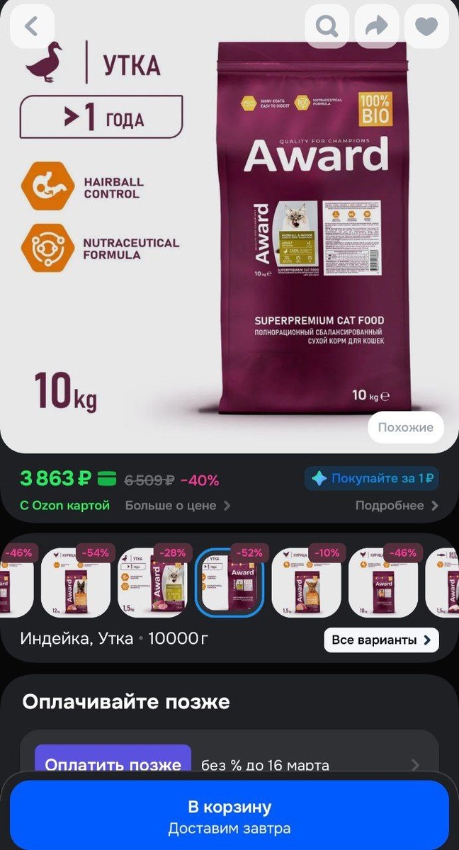 Заказан мешочек корма.