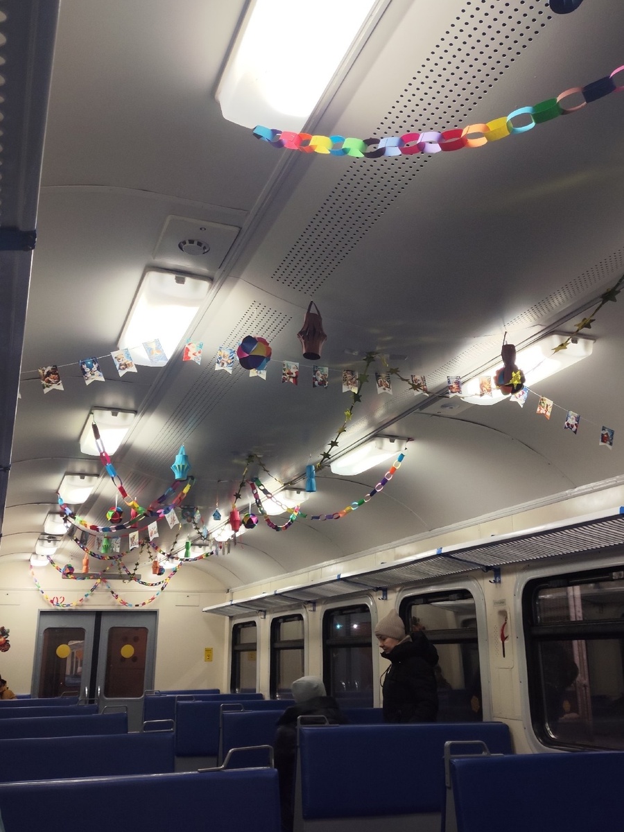 Традиционное новогоднее настроение в электропоезде Ярославского направления «Александров - Москва»