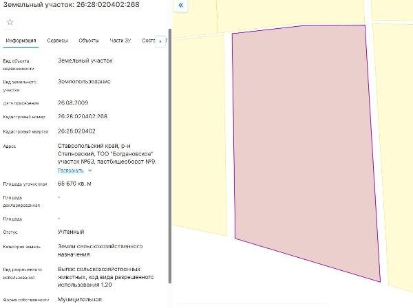Название: Земельный участок с кадастровым номером 26:28:020402:268 площадь 65670 по адресу Ставропольский край, р-н Степновский, ТОО