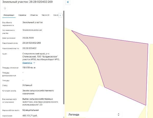 Название: Земельный участок с кадастровым номером 26:28:020402:269 площадь 118619 по адресу Ставропольский край, р-н Степновский, ТОО
