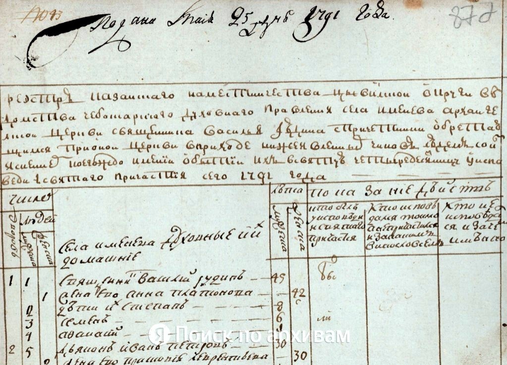 1791 год. Село Именево. Цивильский уезд. Священник Василий Иудич Краснов.