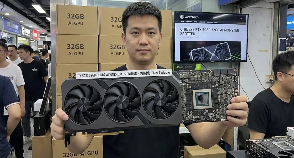 Гайз, это уже какая-то параллельная реальность рынка. Wccftech пишет, что в Китае продают RTX 5080 с 32GB VRAM — жирная, “chunky” версия, заточенная не под игры, а под AI-задачи. 🔻 Ключевое: это именно RTX 5080, но с 32GB памяти.