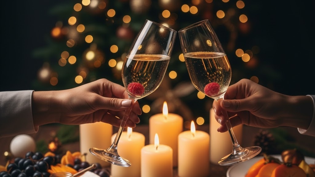 - Аперитив: Ледяное шампанское или кава. Чтобы сделать его новогодним, добавьте в бокал одну замороженную ягоду малины или тонкую полоску цедры апельсина.