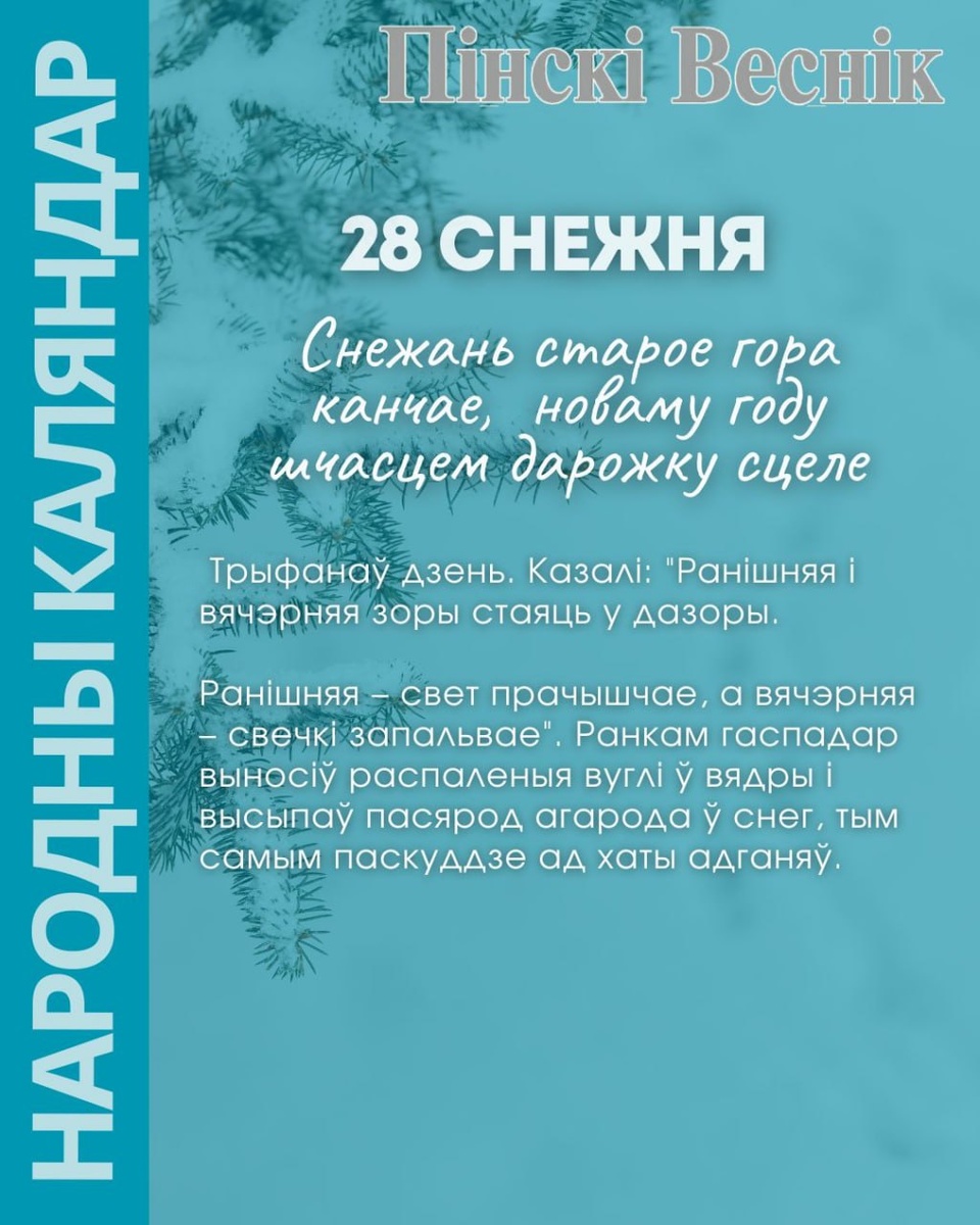 ️⃣ 1️⃣1️⃣1️⃣3️⃣1️⃣5️⃣1️⃣1️⃣ 🏷28 снежня Трыфанаў дзень. Ранкам гаспадар выносіў распаленыя вуглі ў вядры і высыпаў пасярод агарода ў снег, тым самым паскуддзе ад хаты адганяў. ⏩Казалі: "Ранішняя і вячэрняя зоры стаяць у дазоры. Ранішняя – свет прачышчае, а вячэрняя – свечкі запальвае". @Пинский Вестник 📱Ютуб 📱ВК 📱ИНСТАГРАМ 📱ОК 📱ФЕЙСБУК 📱ТИК ТОК Прислать новость