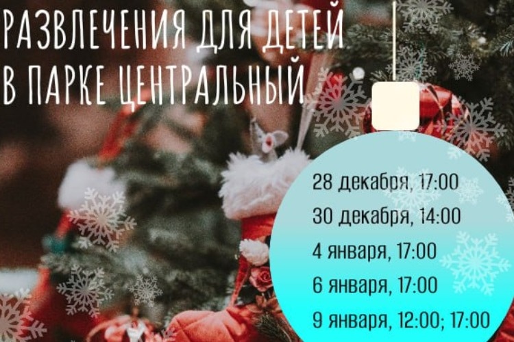 С 28 декабря по 9 января в парке «Центральный» состоятся игровые программы: 28 декабря, 17:00 — «Дружно скачем в Новый год» 30 декабря, 14:00 — «Праздничный калейдоскоп» 4 января, 17:00 — «Галопом по парку „Центральный“ с символом года — Лошадкой И‑Го‑Го!» 6 января, 17:00 — «Новогодняя путаница» 9 января, 12:00 — «Рождественские забавы» 9 января, 17:00 — «Веселимся в Новый год!».