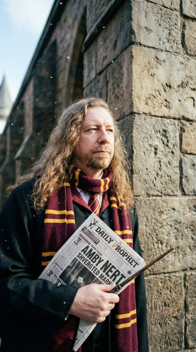 ! В предварении нового года всем хочется немного сказки. И я приготовил вам небольшой подарок. А именно промпт, который позволит перенестись в атмосферу чародейства и волшебства! Вы можете загрузить свое фото в nano banana, применить следующий промпт и получить вот такие классные изображения. Вы можете изменить основное описание, добавить любое другое место, одежду и аксессуары и получить свое уникальное фото. Вот собственно сам промпт: Создай фото в стиле Хогвартс. Мужчина стоит у каменной стены, одетый в мантию и шарф в бордово-золотую полоску (как в фильме про Гарри Поттера). В одной руке он держит газету, а в другой — волшебную палочку, задумчиво глядя вдаль. Освещение яркое, что создаёт атмосферу праздника, идет легкий снег. Черты лица, текстура кожи, глаза, форма носа, форма бровей, форма губ, овал лица, скулы — полностью сохранены как на референсном фото. Наложи немного шум на фото. Глубина резкости небольшая, но достаточная, чтобы все лица были в фокусе. Высокое разрешен