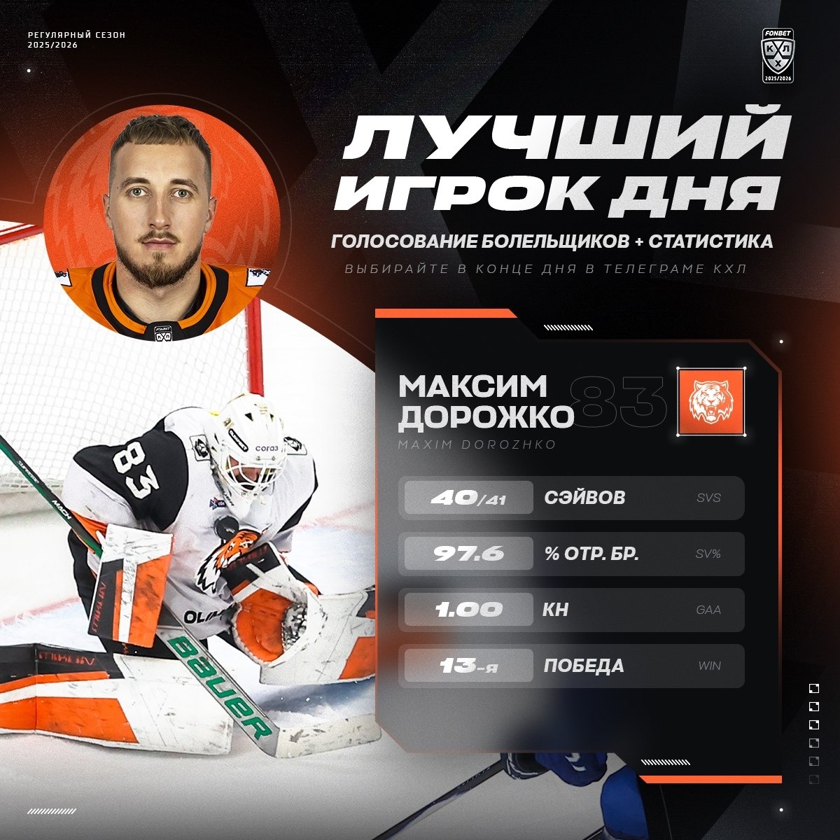 Максим Дорожко в 9-й раз в сезоне сделал 40+ сэйвов — лучший показатель в карьере!