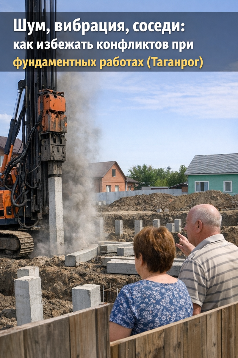 Фундамент — это этап, который слышит весь квартал: миксер, насос, виброплита, разгрузка щебня. В Таганроге участки часто близко, забор к забору, и если сделать “как получится”, конфликт возникнет даже не из-за шума, а из-за ощущения, что на людей наплевали. Поэтому стратегия простая: уважение + порядок + заранее предупреждённые соседи. За 2–3 дня подойдите к соседям и коротко скажите: Никакой “разрешите спросить” — просто по-человечески: “Чтобы вы понимали и не пугались техники”. В частном секторе принято шуметь днём.