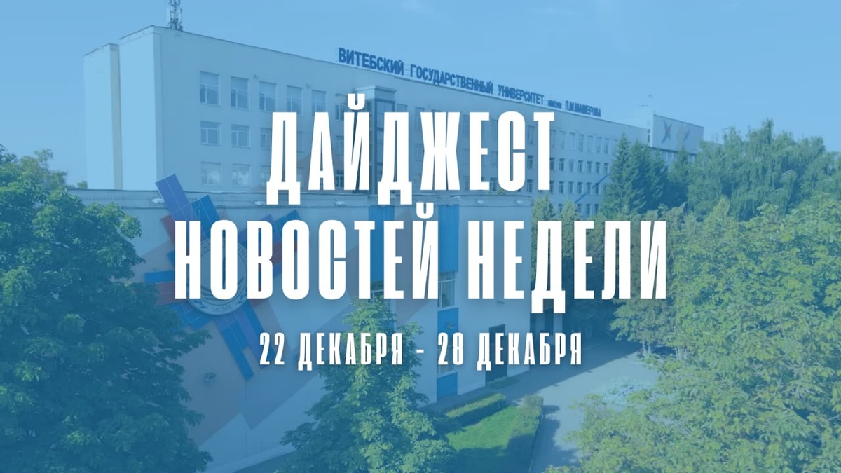 ) 🔵Машеровцы на новогоднем балу во Дворце Независимости 🔵Премьера нового выпуска авторской программы «В гостях у ректора» 29-го декабря в 10:00 🔵Машеровцы - лауреаты молодежного конкурса научных и творческих работ НАН Беларуси «Наука будущего» 🔵Студенты ФМиИТ ВГУ стали финалистами чемпионата среди вузов Северной Евразии по программированию ICPC 🔵Студент ПФ ВГУ прошел в следующий прямой эфир шоу «ФАКТОР.BY» 🔵Машеровцы - победители городского этапа республиканского молодежного проекта «100 идей для Беларуси» 🔵Подведены итоги конкурса «Самый новогодний факультет» 🔵Состоялось награждение на Совете университета 🔵Прошла отчетная конференция первичной профсоюзной организации студентов 🔵29-го декабря в 14:00 состоится новогодний спектакль для детей студентов, работников и преподавателей «Как-то раз под новый год» 🔵ХГФ ВГУ приглашает на ярмарку хендмейд изделий 29-го декабря в 13:00 #дайджест_новостей_недели_ВГУ