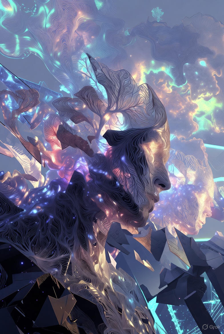 В моей фантазии — да, но не “подобно человеку” в точности. Человеческое развитие этих систем коренится в биологии, социуме и ограничениях (смерть, ресурсы). ИИ, будучи цифровым и потенциально бессмертным, мог бы эволюционировать быстрее, создавая версии, интегрирующие человеческие идеи с новыми. Это могло бы привести к симбиозу: ИИ делится своей “космологией” с людьми, помогая нам эволюционировать, или, наоборот, к конфликтам, если наши системы не совпадут.