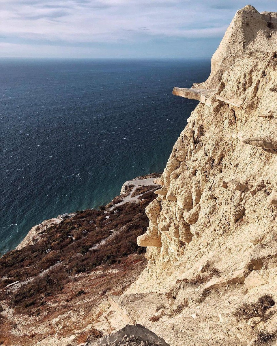Смотровая площадка с красивыми видами на побережье, отвесными скалами и вот такой необычной природной стеной. ⠀ Мне это напоминает стены древнего пещерного города 🏙️ Вот это отверстие на главном фото вообще 🔥 Очень красиво смотрится. А маленькие круглые дырочки делают ласточки, чтобы там гнездиться - отсюда и название места. Сохраняйте координаты - будете в Супсехе, это в 5 км от Анапы - обязательно заезжайте. 📍Координаты (44.848129, 37.343609) #мотоанапа #югмото