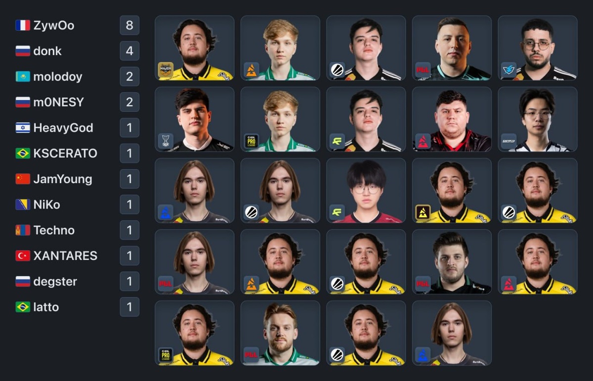 🏆 Топ игроков по количеству полученных MVP на турнирах в 2025 году