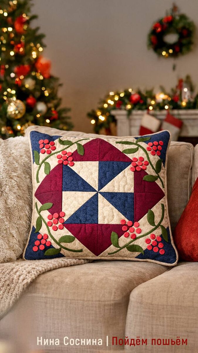 До Нового года осталось дня! Дни полны дел и ожидания праздника, и особенно приятно, когда есть проект, которому можно посвятить время, вложив в него зимнее настроение и предвкушение праздника. «Ягодная сказка» — это лоскутный блок с объёмной аппликацией. В нём важны гармония тканей, аккуратная сборка и внимание к деталям. Распечатайте шаблон, подберите материалы, перенесите элементы на ткань и соберите композицию. Скачать шаблон: https://t.me/diy_workshop/953