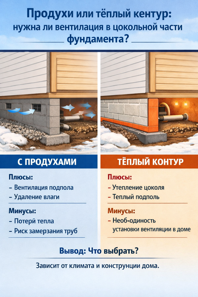 2) по плите/стяжке (пол по грунту, тёплый контур) → продухи обычно не делают. И второе: Тут важны не сантиметры “по памяти”