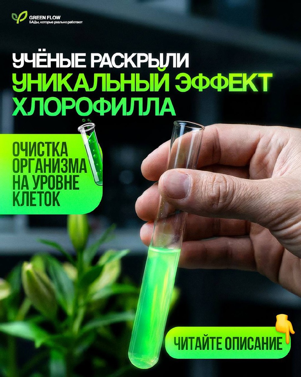 Это не очередная добавка, коих сотни! Вот что говорят Учёные🧑🔬👇 Он работает как внутренний детокс, мягко очищая кровь. Самое удивительное — это принцип действия, как у кислорода. Его молекула похожа на наш гемоглобин! Он помогает клеткам «дышать» эффективнее. Не зря его называют «кровью растений» 🍃 Избавляет от неприятного запаха и активирует чистые феромоны. Люди, находясь рядом, вдыхают их и мозг начинает воспринимать вас привлекательнее до 65% 👀 Проникает глубоко в клетки: очищает от токсинов и вредоносных металлов, которые копятся в теле годами, ввиду современного образа жизни Заказать премиальный Хлорофилл от нашего Бренда можно на WB, введя артикул в строку поиска ✍🏻 Артикул: WW176519 GREENFLOW.LIFE