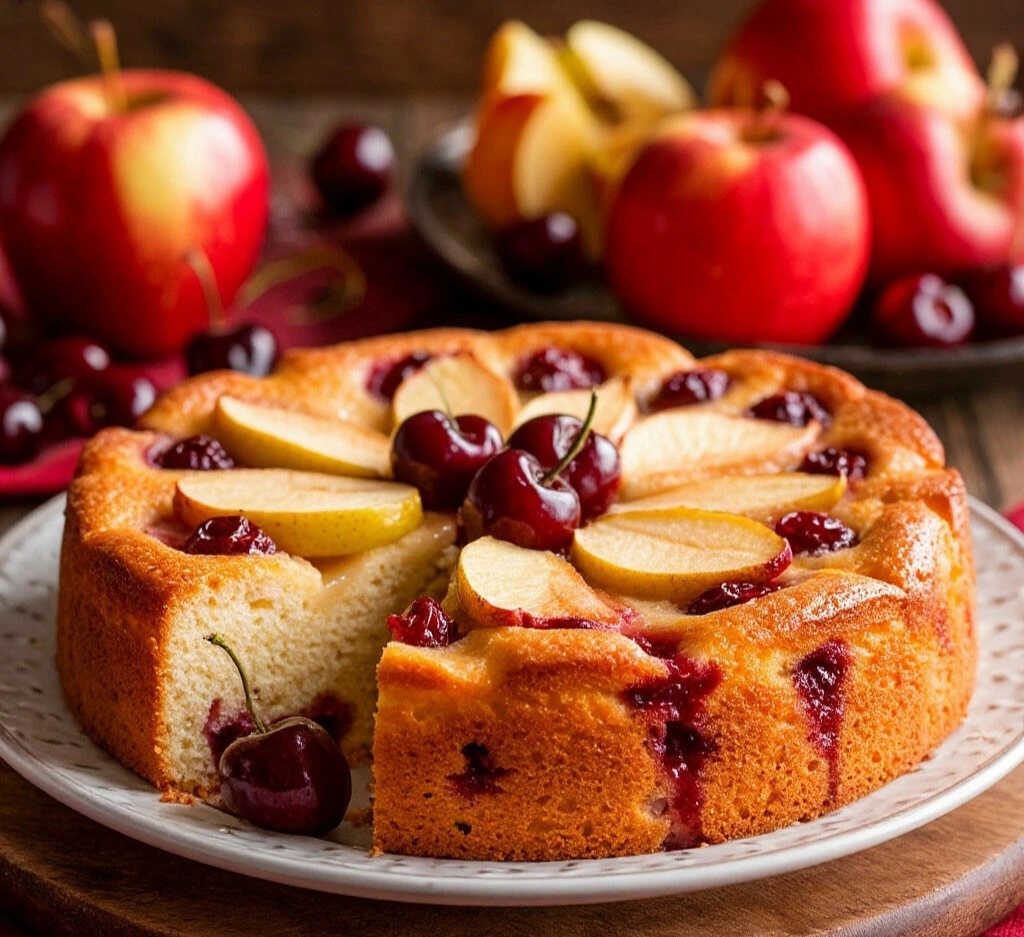 ШАРЛОТКА С ЯБЛОКАМИ И ВИШНЕЙ 🍰