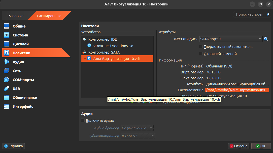 Я создал виртуальную машину в VirtualBox и пожалел место выделив всего 15 Гб. На виртуальной машине установлен Linux, автоматическая разметка установила не lvm. Т.е. на гостевой машине нет lvm и необходимо расширить корневой раздел. Первым шагом на хостовой машине (на Гипервизоре) необходимо расширить vdi файл. Для этого переходим в каталог в котором находится данный файл. У меня это "/mnt/vm/vhd/Альт Виртуализация 10" cd /mnt/vm/vhd/Альт\ Виртуализация\ 10 Видим файл диска "Альт Виртуализация 10.vdi". Командой VBoxManage увеличиваем размер диска до 90Гб VBoxManage modifymedium disk Альт\ Виртуализация\ 10.vdi --resize 90000 После этого переходим в виртуальгую машину. Так как мне нужно расширить корневой раздел, загружаюсь с загрузочного диска и выбираю "Rescue LiveCD". После загрузки командой lsblk находим раздел размер которого необходимо увеличить. В мое случае это /dev/sda2 Запускаем fdisk fdisk /dev/sda Вводим p и запоминаем стартовый сектор раздела. В моем случае это 4194304 Удал