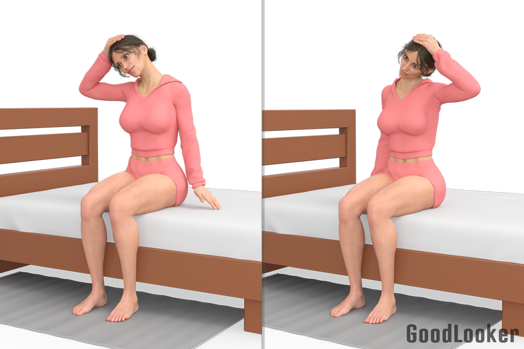 Пробуждение – это не только момент, когда открываются глаза, но и время, когда тело постепенно «возвращается в движение». Резкий подъем и суета с первых минут часто приводят к зажатости в шее, спине и ощущению усталости уже в начале дня. Небольшая утренняя практика прямо на кровати помогает мягко разбудить мышцы, улучшить кровообращение и настроиться на день без стресса. Для этого не нужна форма, коврик или особая подготовка, достаточно нескольких осознанных поз. Во время выполнения упражнений дышите спокойно и глубоко, без задержек. Старайтесь направлять дыхание в грудную клетку и живот – это помогает мышцам расслабляться, улучшает кровообращение и усиливает эффект от утренней практики. Для чего: Упражнение расслабляет боковые мышцы шеи и снижает напряжение, которое часто накапливается во сне. Помогает уменьшить ощущение «тяжелой головы». Как выполнять: Сидя на кровати, выпрямите спину. Медленно наклоните голову в сторону и слегка придержите ее рукой, не надавливая. Плечи остаются опу