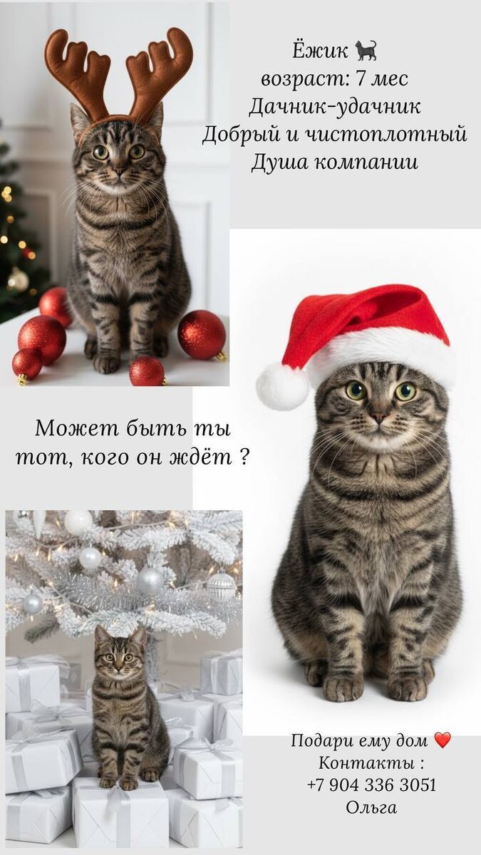 ! Это ЁЖИК! Он мечтает о доме и семье. Очень душевный, добрый, ласковый темный полосатик! Спасен с дачного участка Возраст 7 месяцев, кастрирован, лоток на отлично. Принесет в ваш дом много радости и счастья. +7 (921) 756-08-21 Юлия #марафон #тренды2026 #ищетдом@koskaikot #рекомендации #котята #рек #тренды@koskaikot