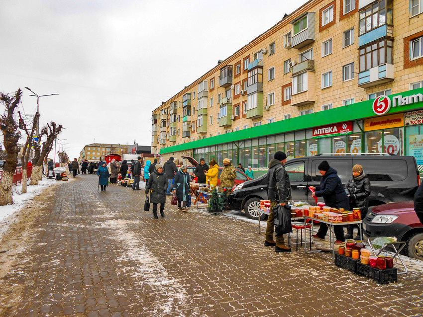 В Камышине перед Новым годом наблюдается оживление на стихийном рынке на улице Ленина. Рынок расширился, здесь по-прежнему торгуют с коробок, картонок, тряпок, ящиков и просто с земли.