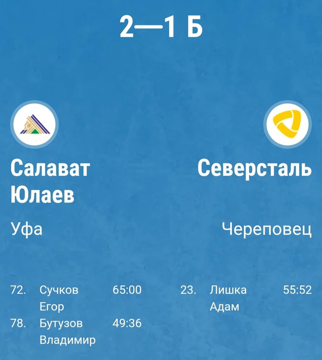 Череповчане уступили в Уфе «Салавату Юлаеву» в серии буллитов. До 50-й минуты счет был 0:0. Хозяева открыли счет в матче за 10 минут до финальной сирены, но «Северсталь» усилиями капитана Адама Лишки успела сравнять. Судьба игры решилась в серии буллитов, в которой уфимцы оказались удачливее. Одно очко, набранное «Северсталью», позволило ей выйти на первое место в Западной конференции.