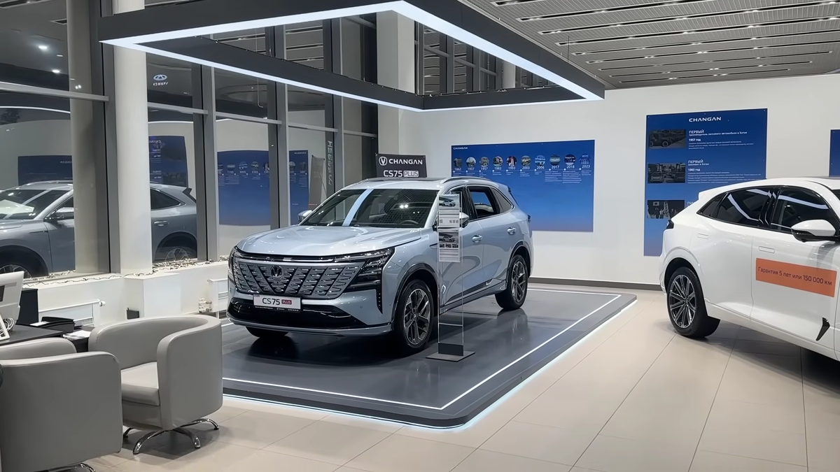Сразу с порога меня встретил главный герой нынешней экспозиции - обновленный Changan CS75 Plus четвертого поколения. Если вы помните, раньше «семьдесят пятый» был просто добротным середняком, рабочей лошадкой для семьи. Теперь же китайцы решили, что скромность - это путь в никуда, и выкатили рестайлинговую версию с претензией на премиум. Выглядит машина, спору нет, эффектно, но когда я подошел к стойке с ценой, у меня невольно дернулся глаз. За комплектацию «Люкс» дилеры сейчас просят от 4 миллионов 400 тысяч до 4 миллионов 550 тысяч рублей. Вы только вдумайтесь в эти цифры - четыре с половиной миллиона за среднеразмерный китайский кроссовер.