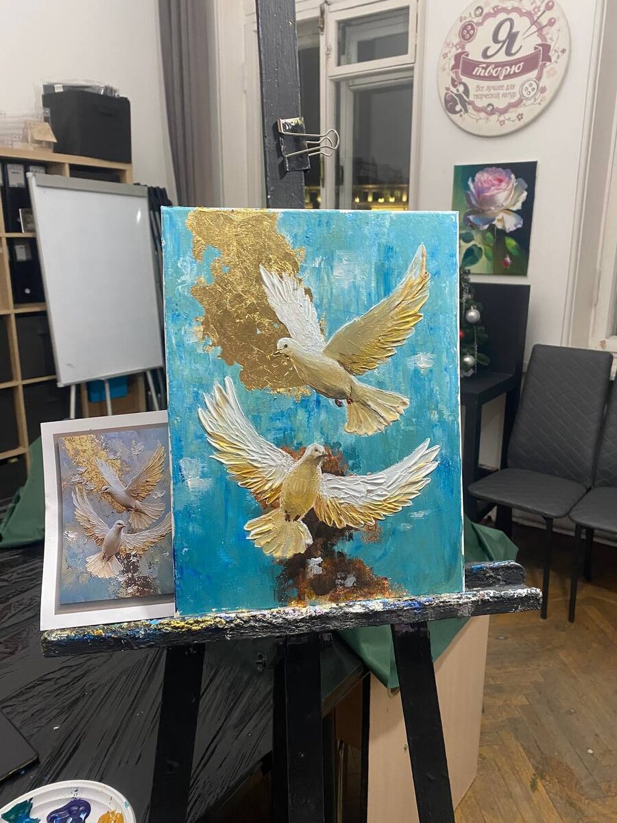 ! Приглашаем и вас на мастер-класс по созданию обьемной картины с текстурной пастой и поталью. Научим создавать уникальные текстуры и добавлять роскошное сияние потали. От вас не требуется художественный опыт, главное - желание творить и прекрасно провести время. Кстати, это замечательный вариант арт-свидания на новогодних каникулах.