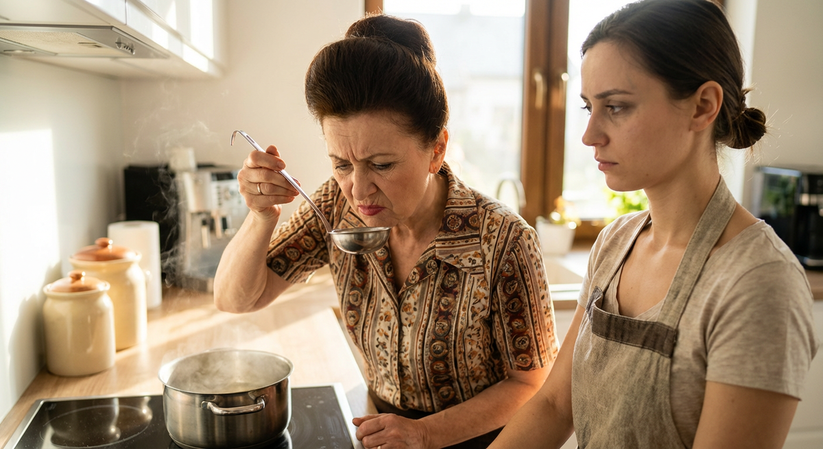 – Опять ты моркови набухала, как для кроликов. Суп должен быть прозрачным, янтарным, а у тебя какое-то рыжее месиво получилось. И лавровый лист... Ну кто же кладет его в начале варки? Он же горечь дает, Полина! Элементарных вещей не знаешь, а еще обижаешься.